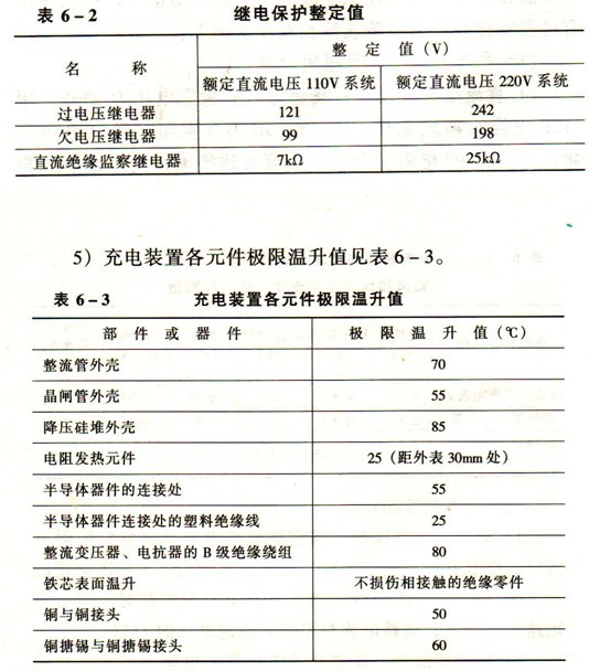 4)充電裝置的保護(hù)及聲光報(bào)警功能。充電裝置應(yīng)具有過(guò)流、過(guò)壓、欠壓、絕緣監(jiān)察、交流失壓、交流缺相等保護(hù)及聲光報(bào)警的功能。繼電保護(hù)整定值見表6-2
